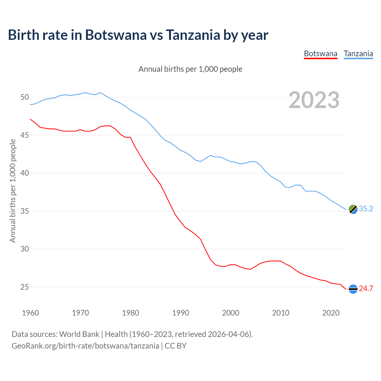 GeoRank.org/birth-rate/botswana/tanzania | CC BY