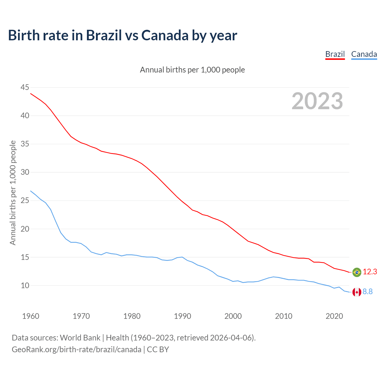 GeoRank.org/birth-rate/brazil/canada | CC BY
