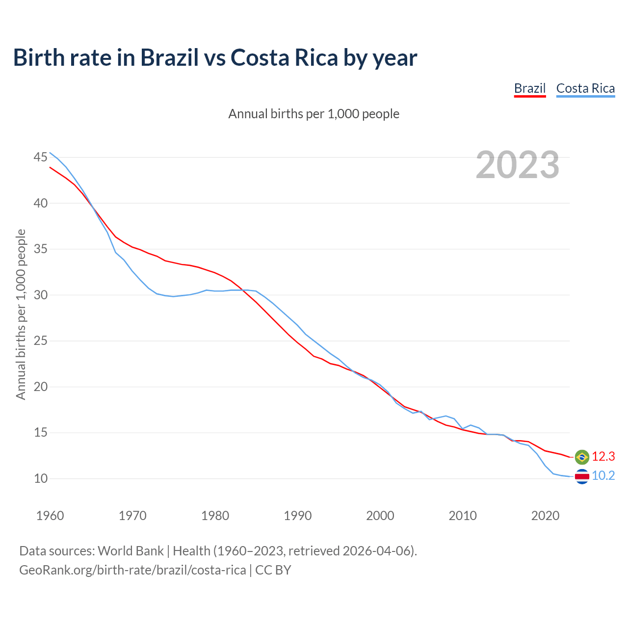 GeoRank.org/birth-rate/brazil/costa-rica | CC BY