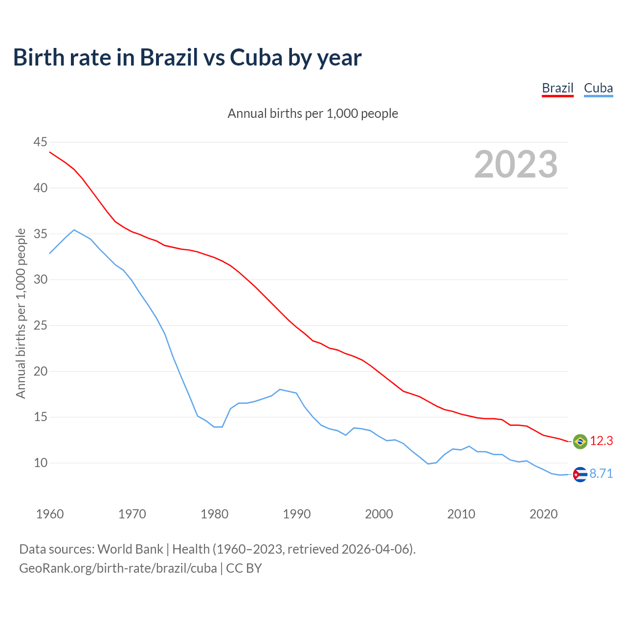 GeoRank.org/birth-rate/brazil/cuba | CC BY