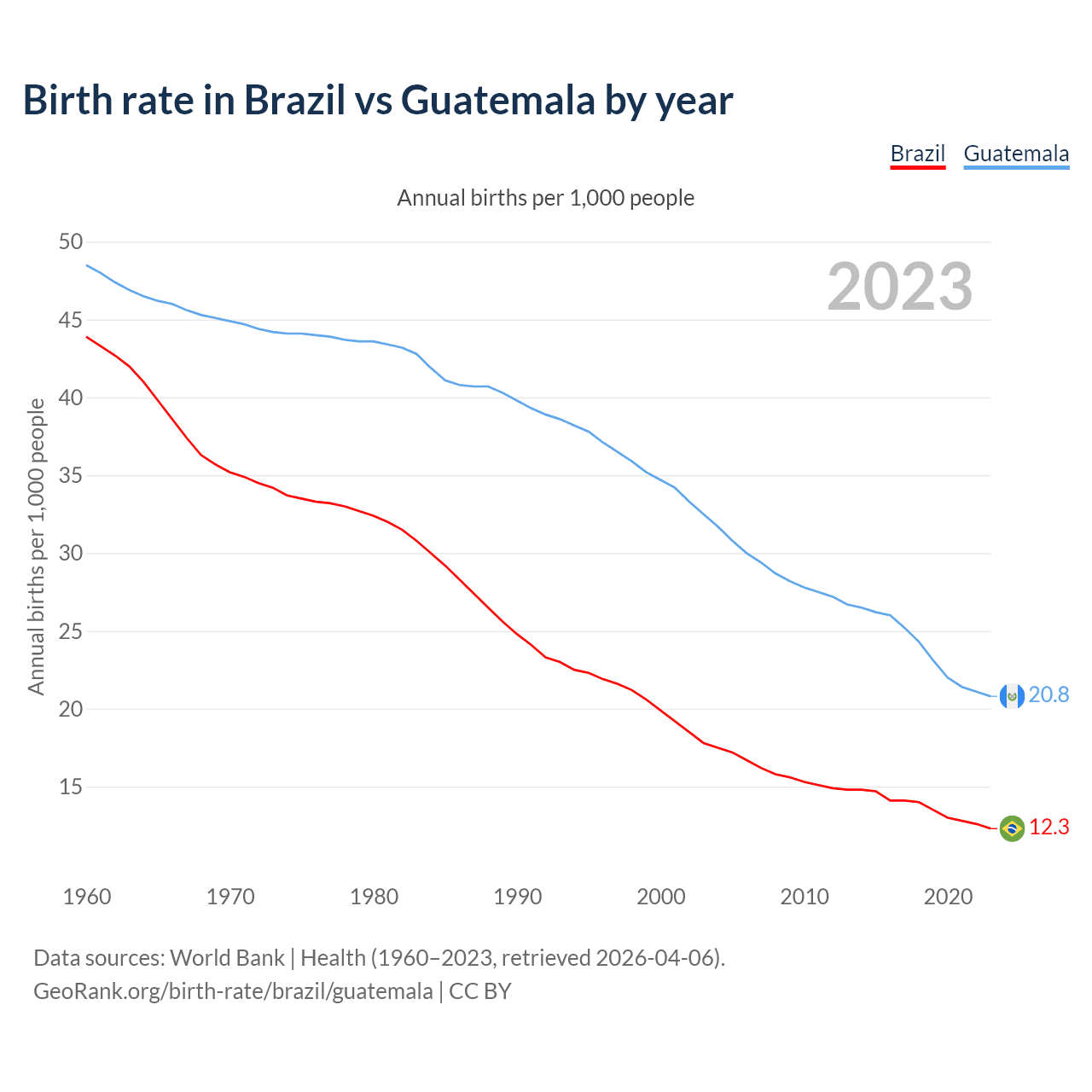 GeoRank.org/birth-rate/brazil/guatemala | CC BY