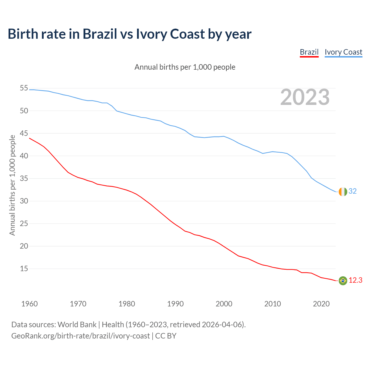 GeoRank.org/birth-rate/brazil/ivory-coast | CC BY