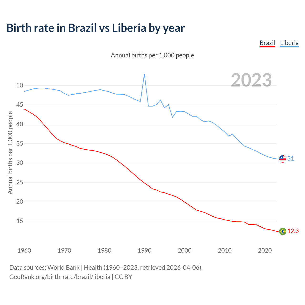 GeoRank.org/birth-rate/brazil/liberia | CC BY