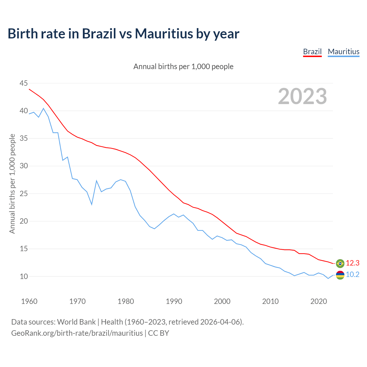 GeoRank.org/birth-rate/brazil/mauritius | CC BY