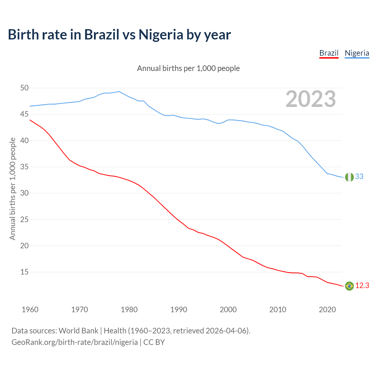 GeoRank.org/birth-rate/brazil/nigeria | CC BY