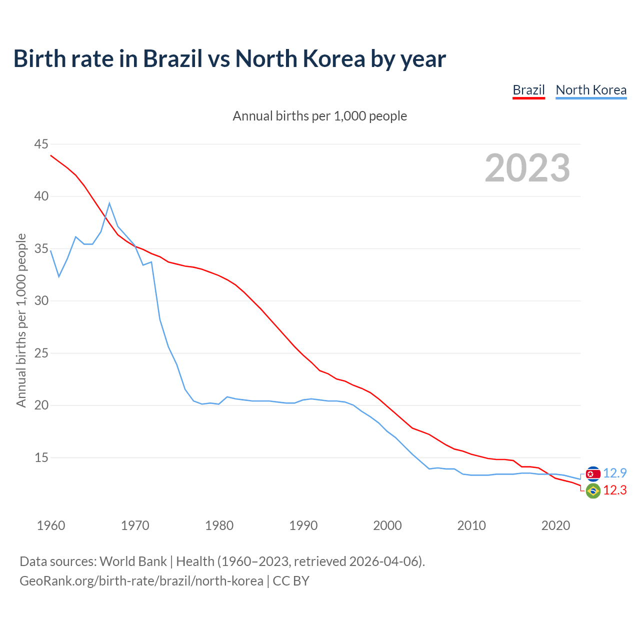 GeoRank.org/birth-rate/brazil/north-korea | CC BY