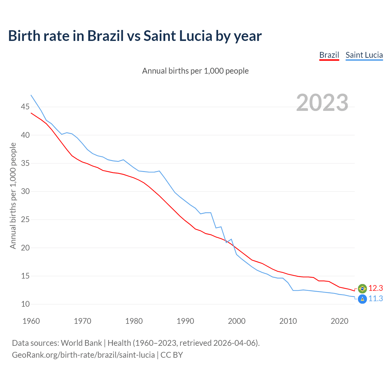 GeoRank.org/birth-rate/brazil/saint-lucia | CC BY