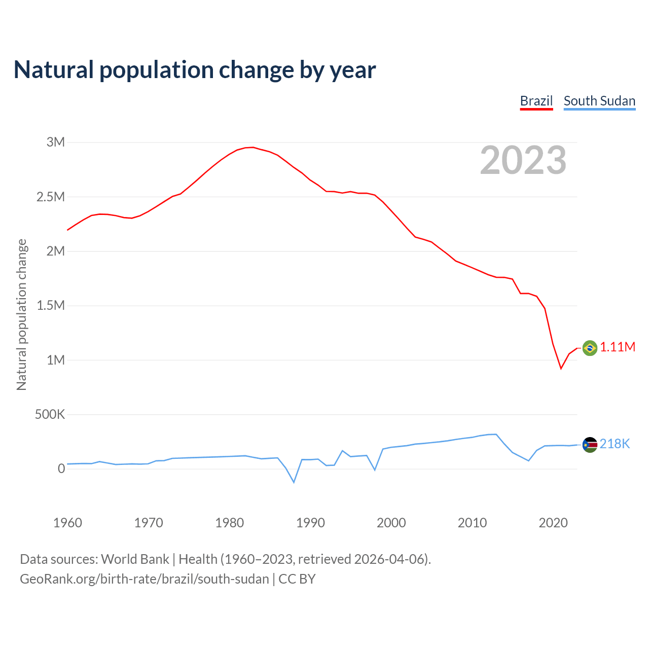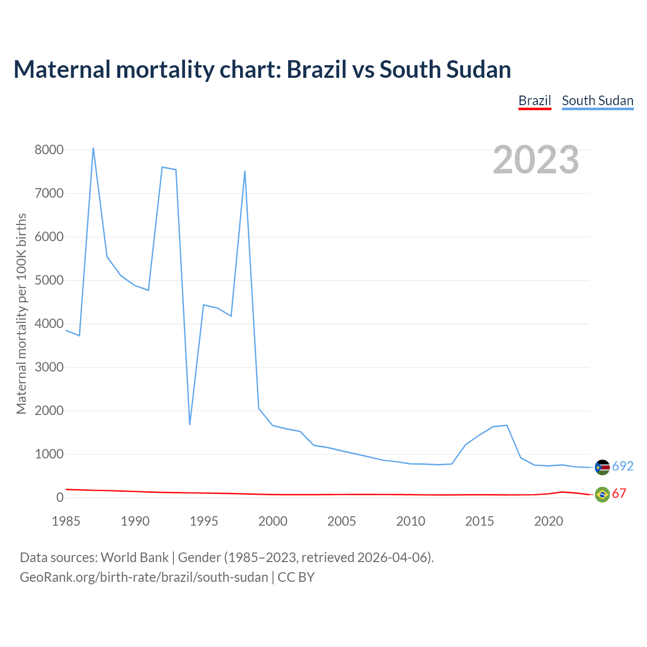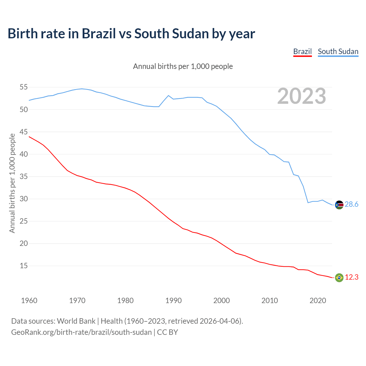 GeoRank.org/birth-rate/brazil/south-sudan | CC BY