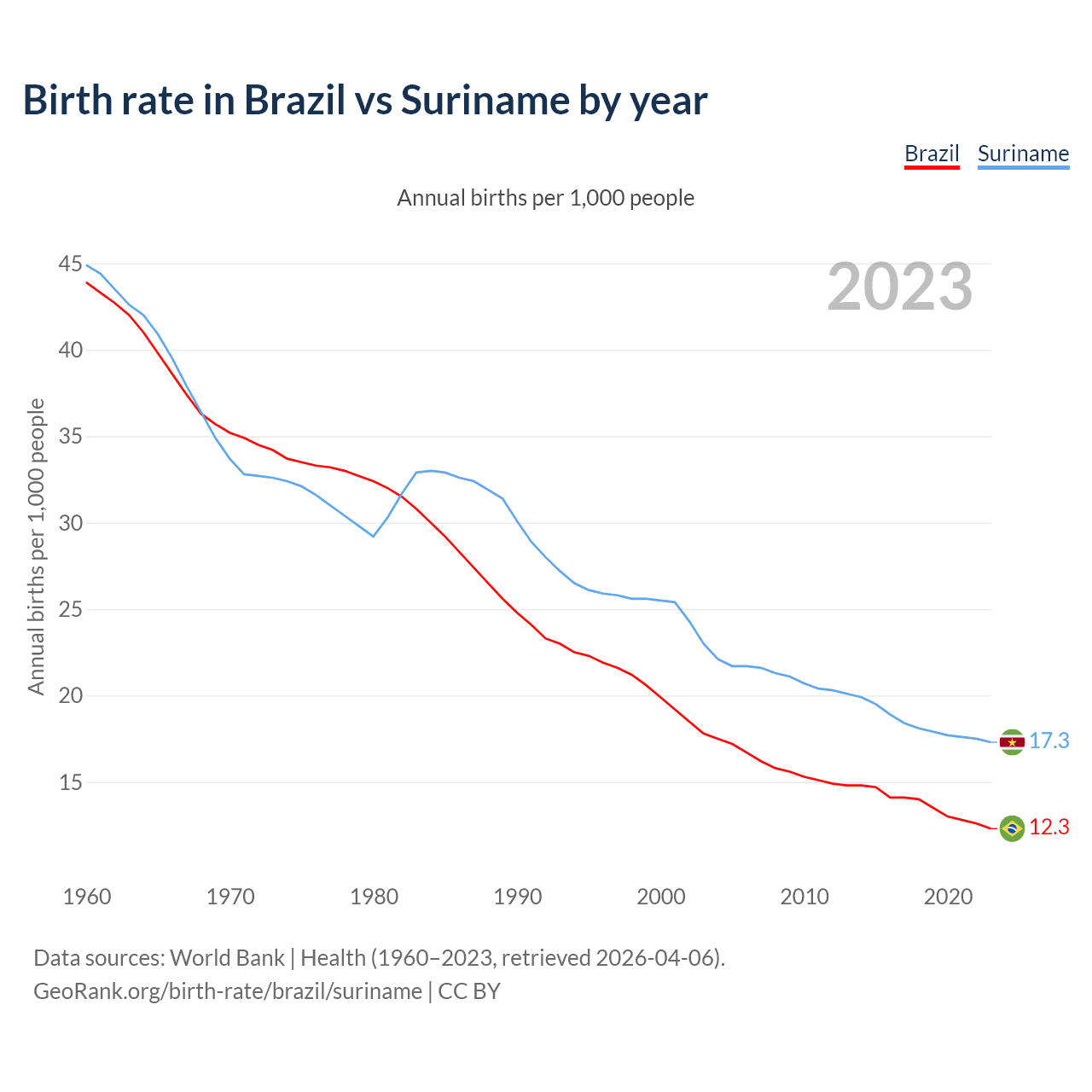 GeoRank.org/birth-rate/brazil/suriname | CC BY