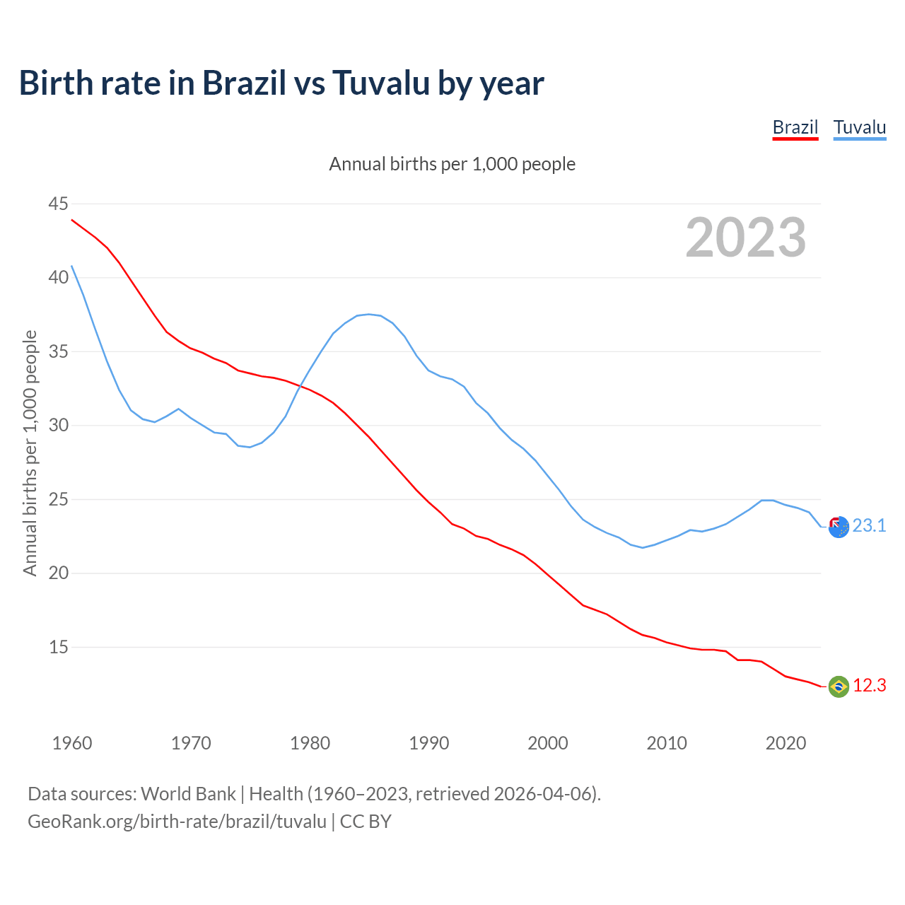 GeoRank.org/birth-rate/brazil/tuvalu | CC BY