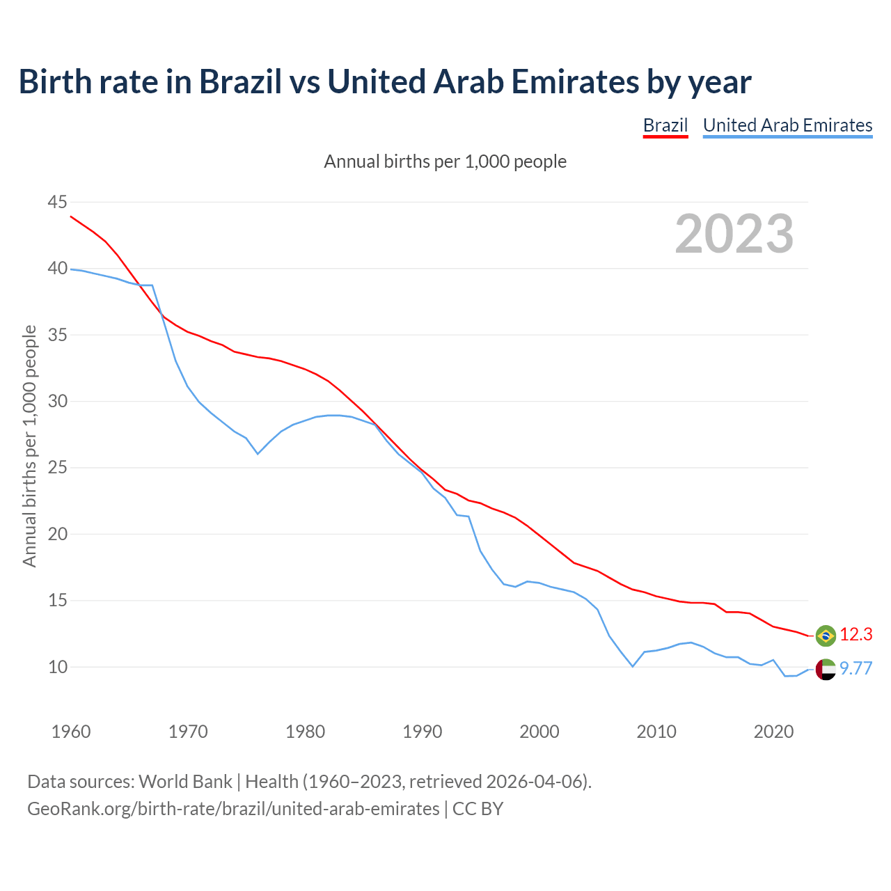 GeoRank.org/birth-rate/brazil/united-arab-emirates | CC BY