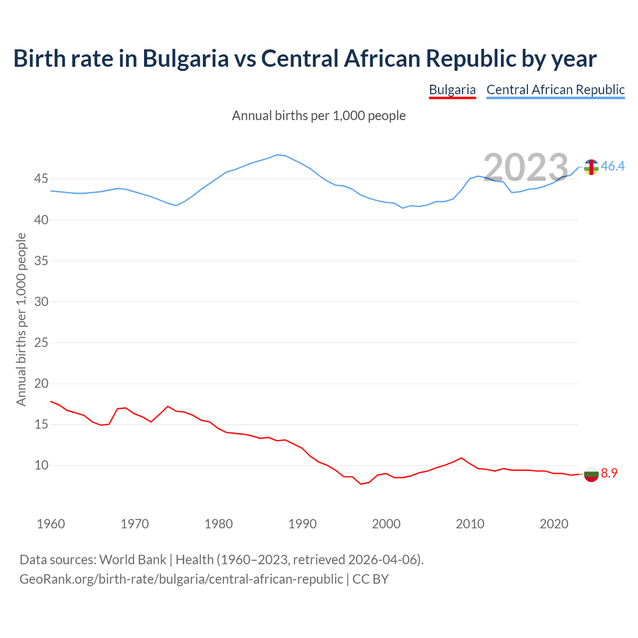 GeoRank.org/birth-rate/bulgaria/central-african-republic | CC BY