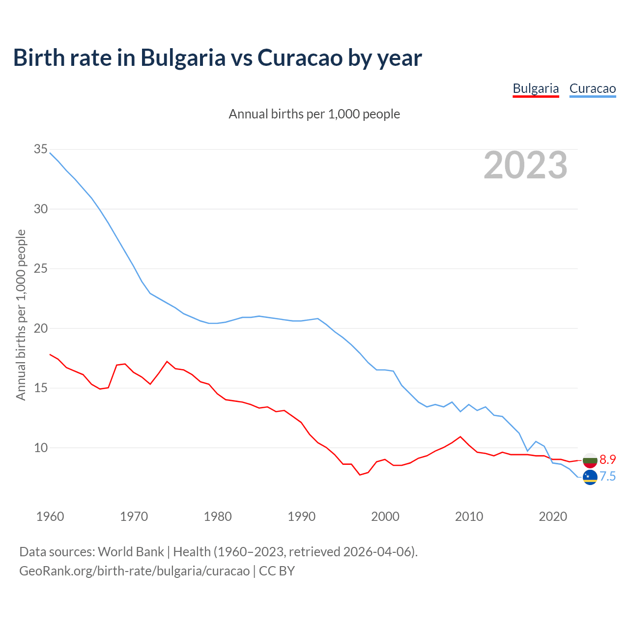 GeoRank.org/birth-rate/bulgaria/curacao | CC BY