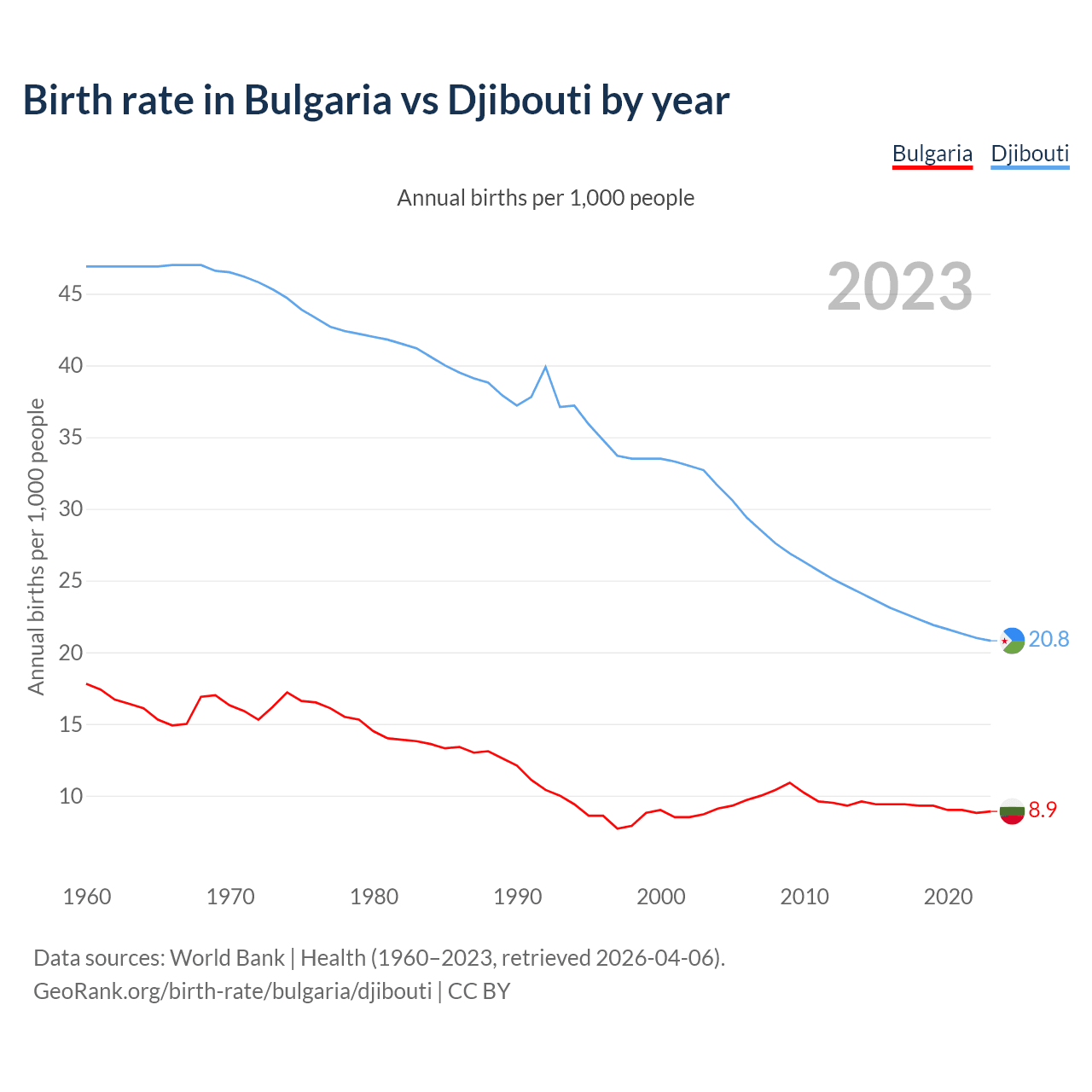GeoRank.org/birth-rate/bulgaria/djibouti | CC BY
