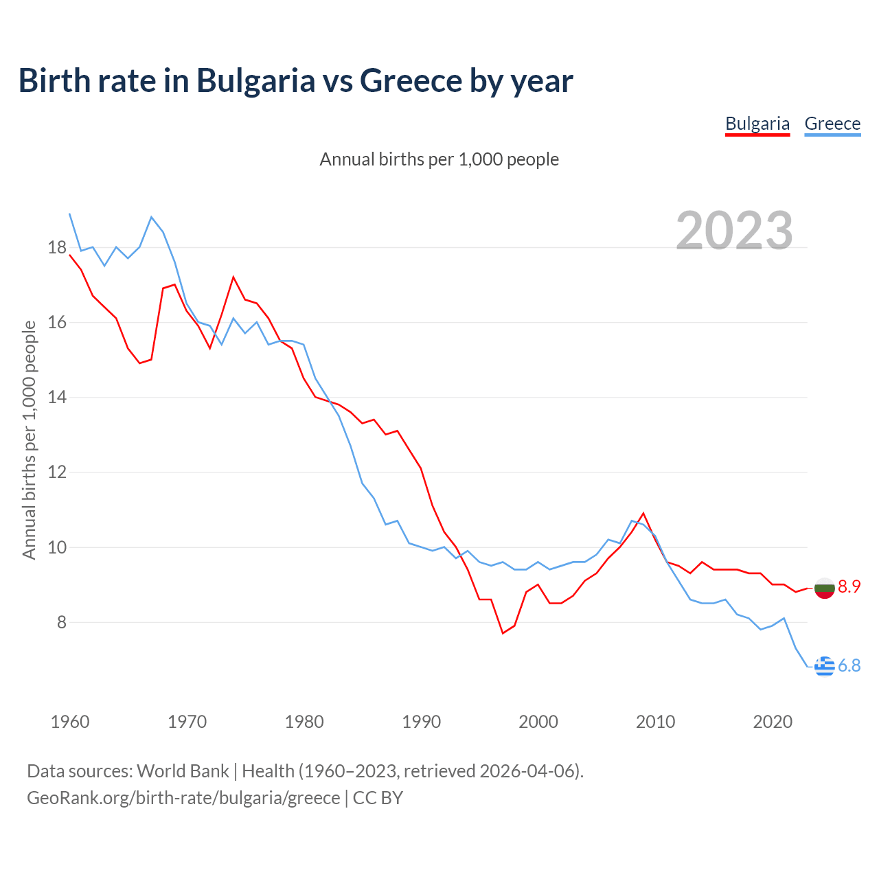 GeoRank.org/birth-rate/bulgaria/greece | CC BY