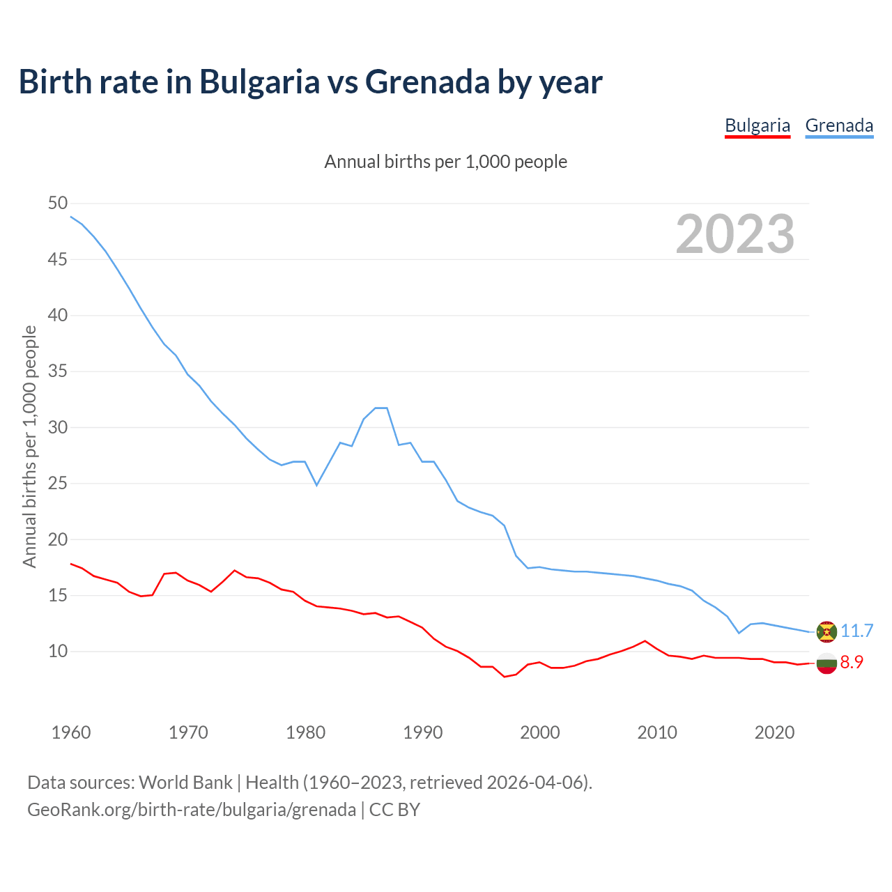 GeoRank.org/birth-rate/bulgaria/grenada | CC BY
