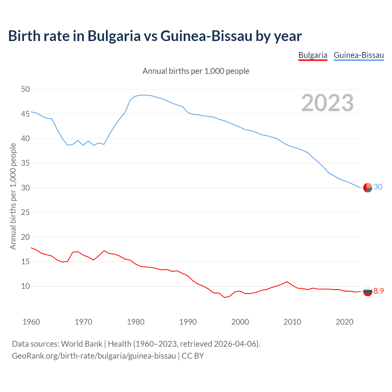 GeoRank.org/birth-rate/bulgaria/guinea-bissau | CC BY