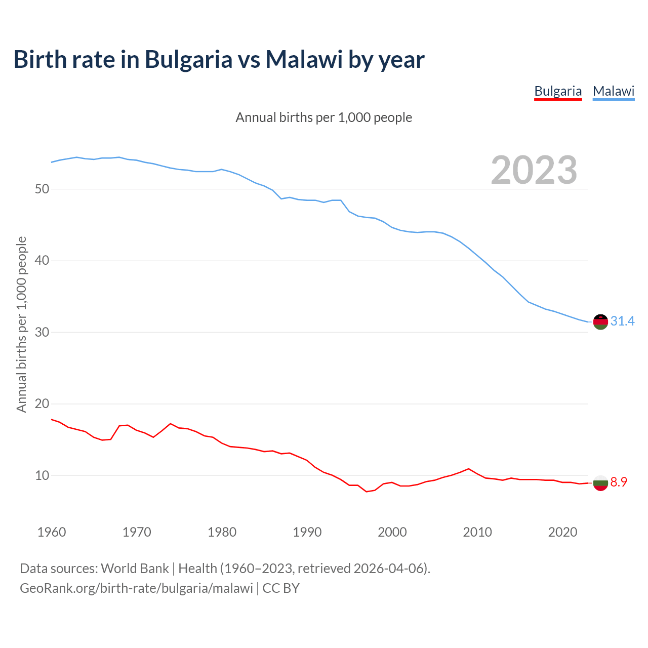 GeoRank.org/birth-rate/bulgaria/malawi | CC BY