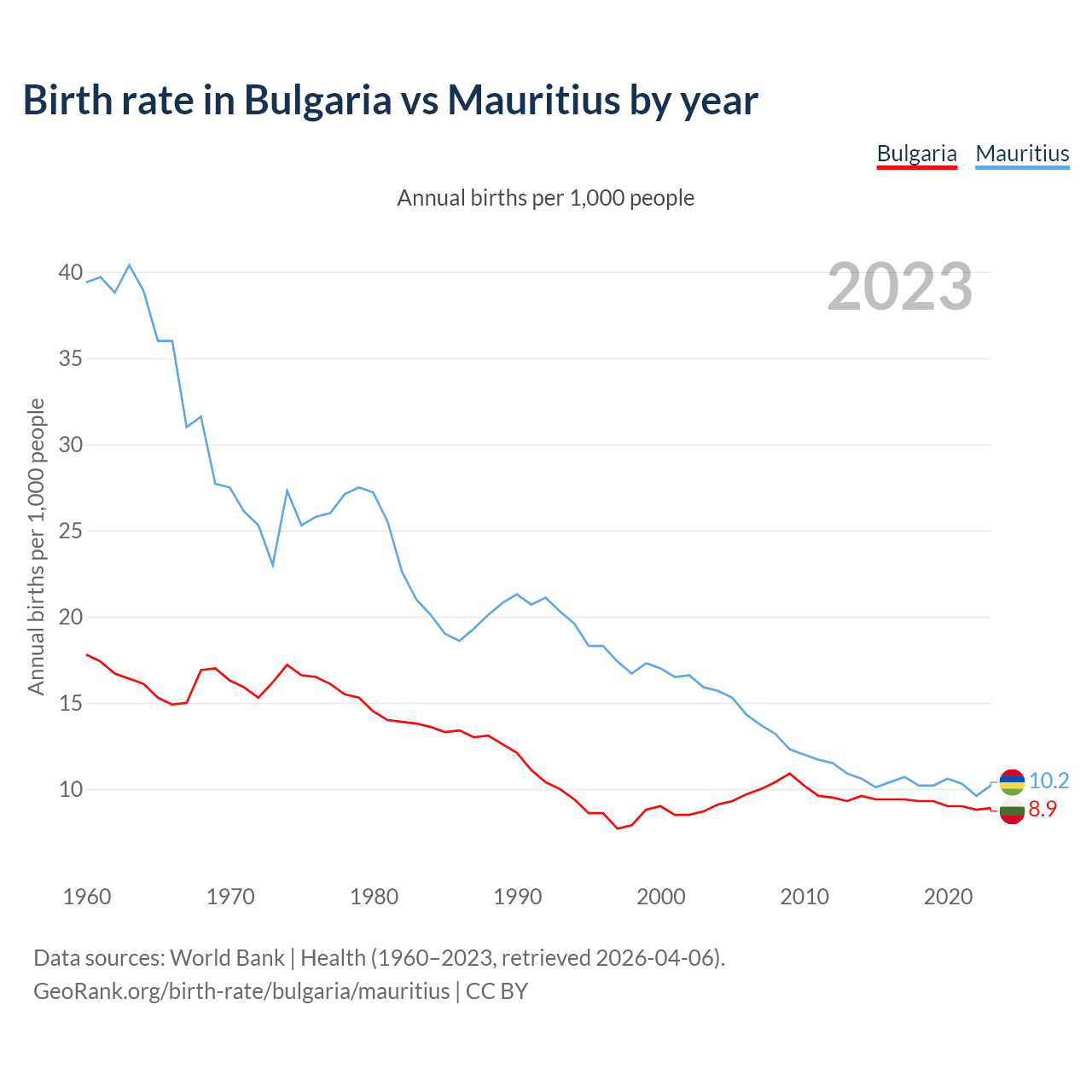 GeoRank.org/birth-rate/bulgaria/mauritius | CC BY