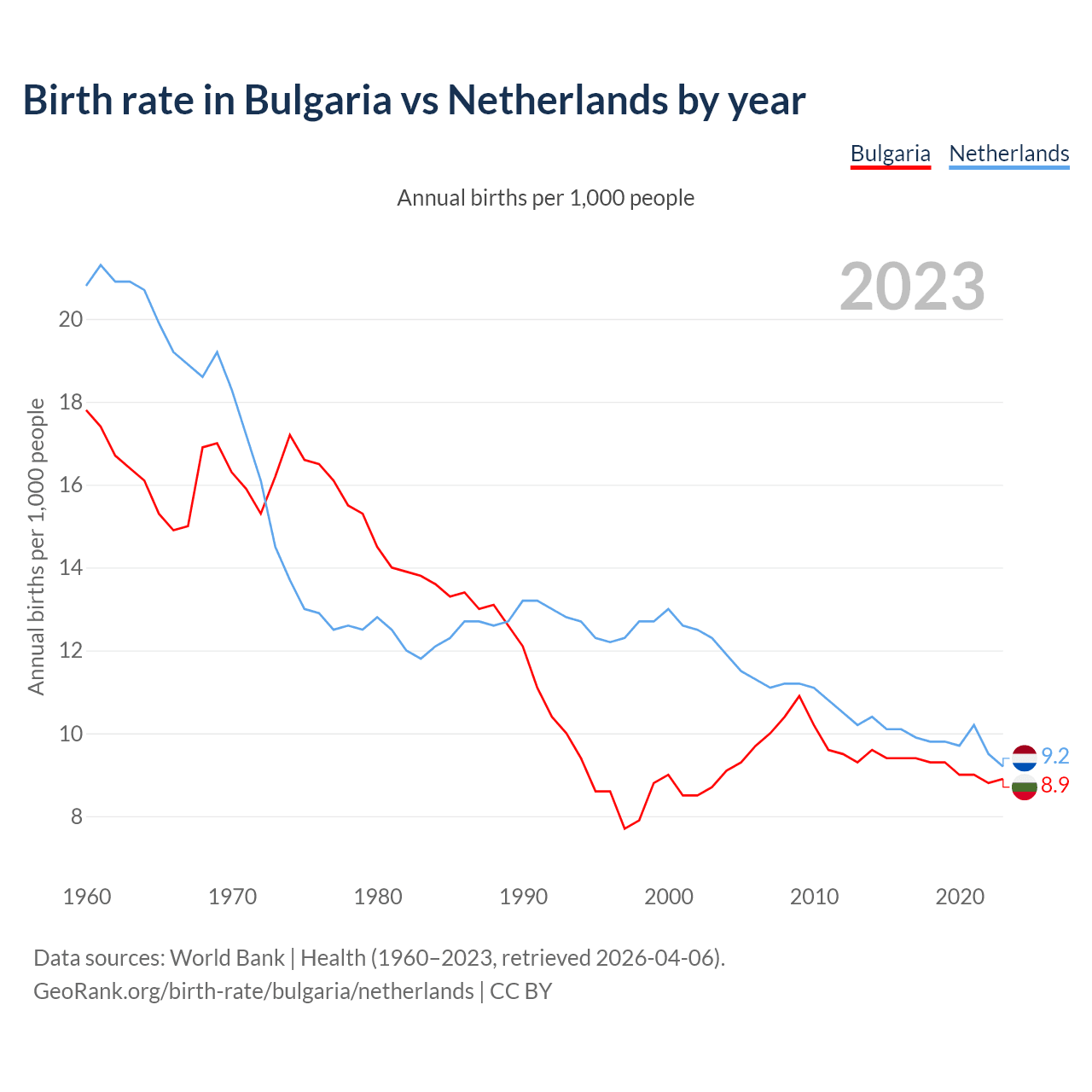 GeoRank.org/birth-rate/bulgaria/netherlands | CC BY