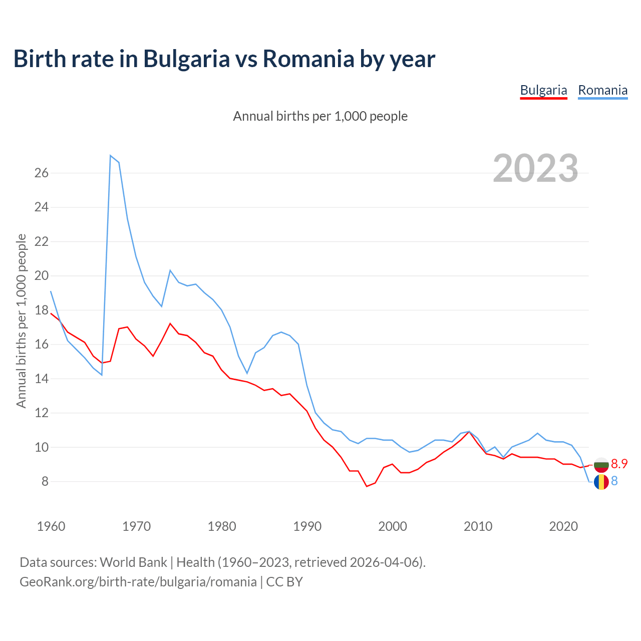 GeoRank.org/birth-rate/bulgaria/romania | CC BY