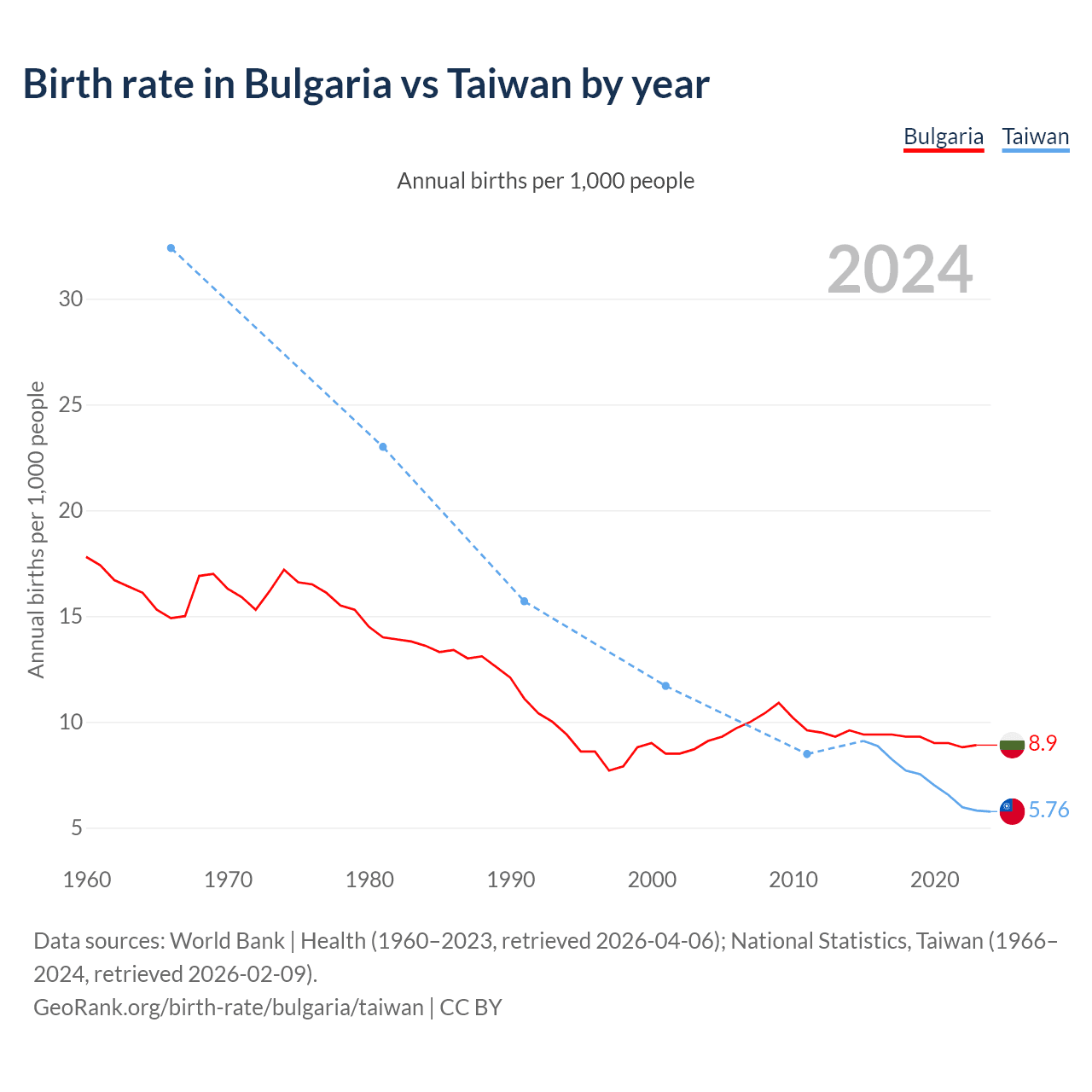 GeoRank.org/birth-rate/bulgaria/taiwan | CC BY