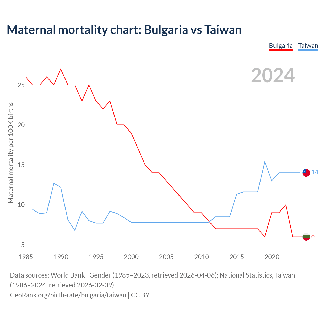 Maternal mortality chart: Bulgaria vs Taiwan