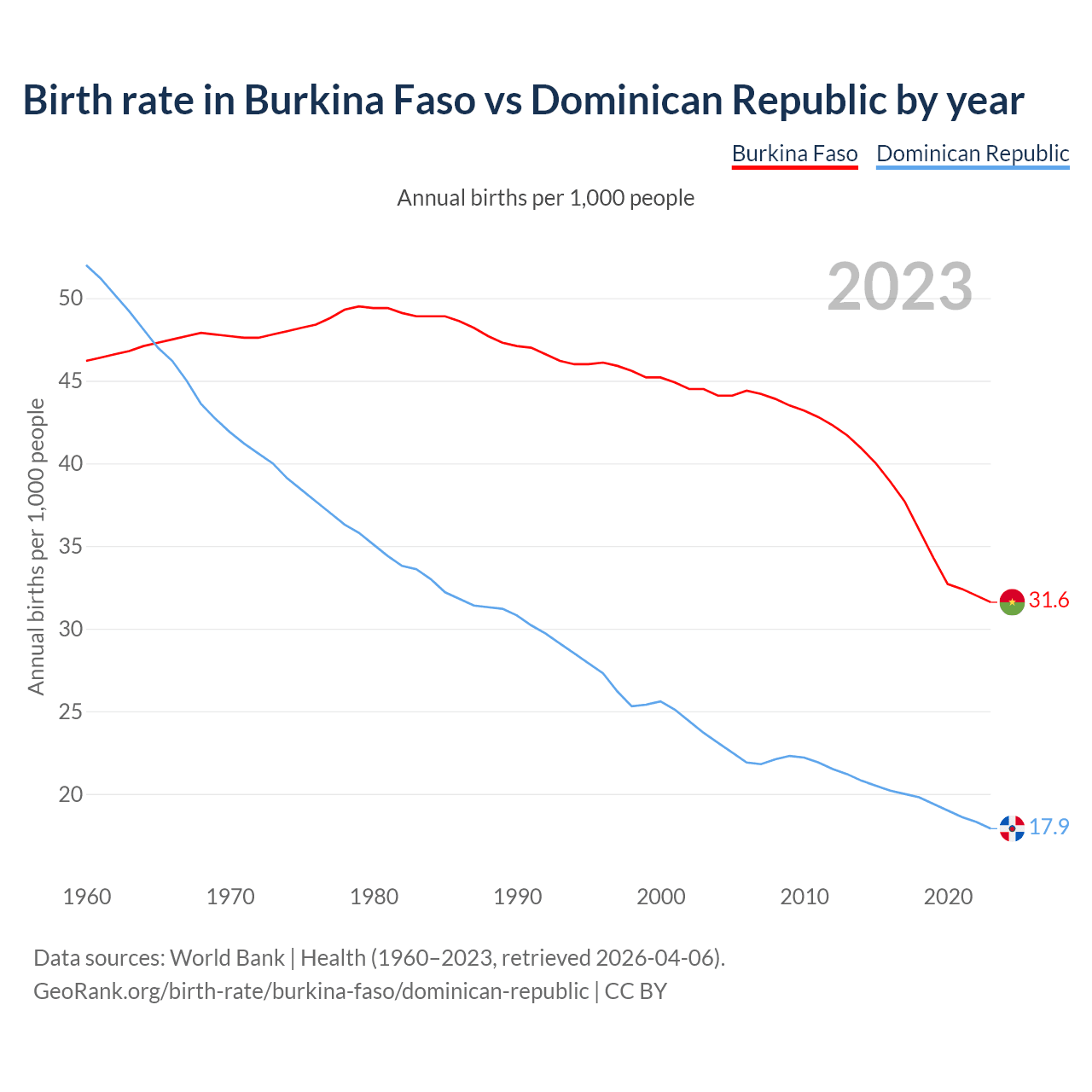 GeoRank.org/birth-rate/burkina-faso/dominican-republic | CC BY