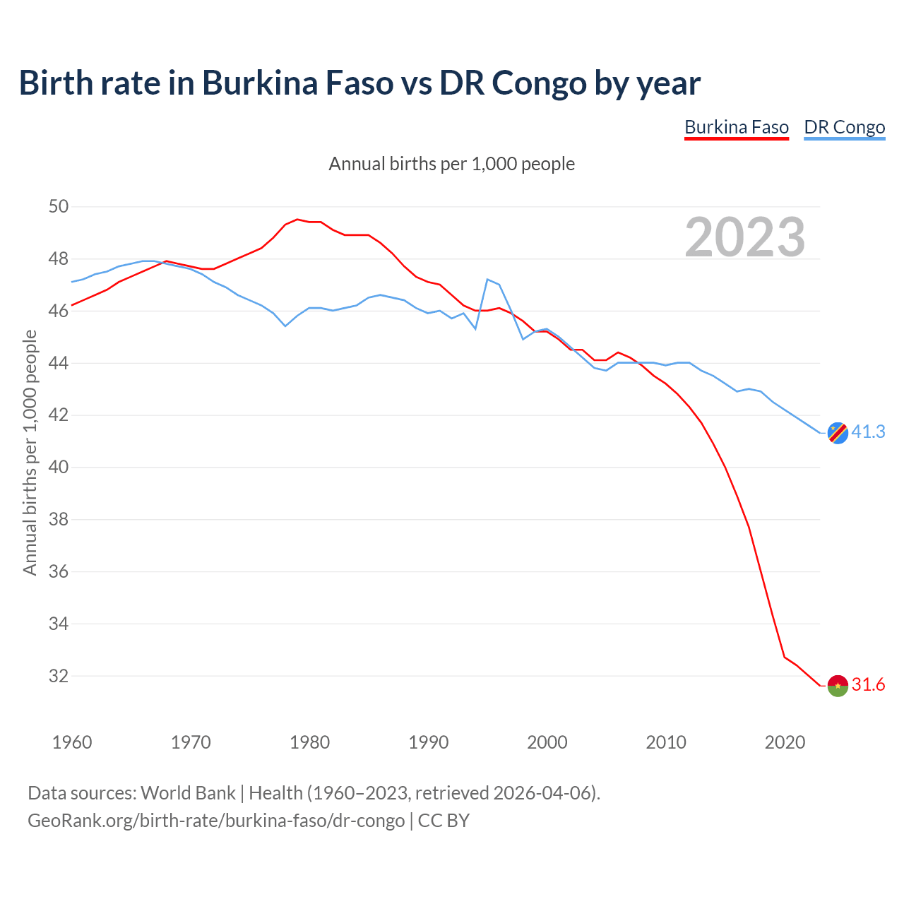 GeoRank.org/birth-rate/burkina-faso/dr-congo | CC BY