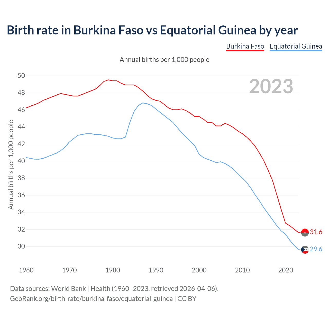 GeoRank.org/birth-rate/burkina-faso/equatorial-guinea | CC BY