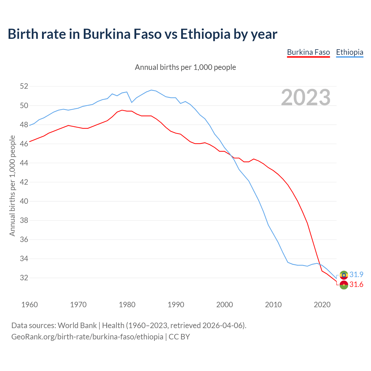 GeoRank.org/birth-rate/burkina-faso/ethiopia | CC BY