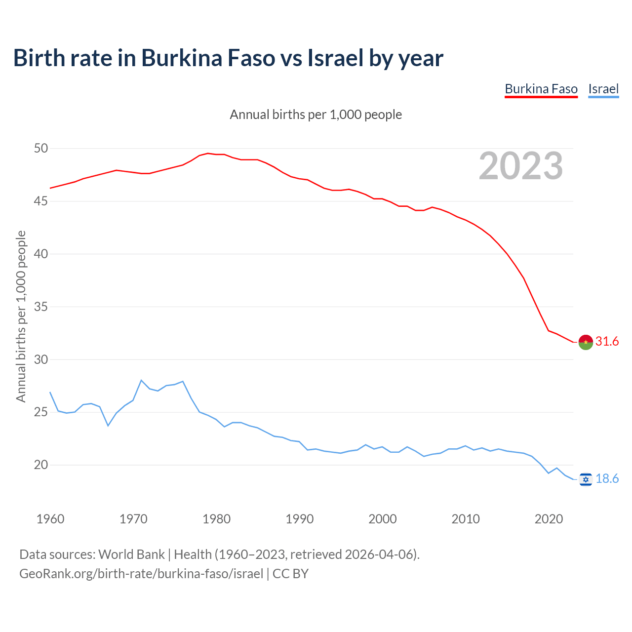 GeoRank.org/birth-rate/burkina-faso/israel | CC BY