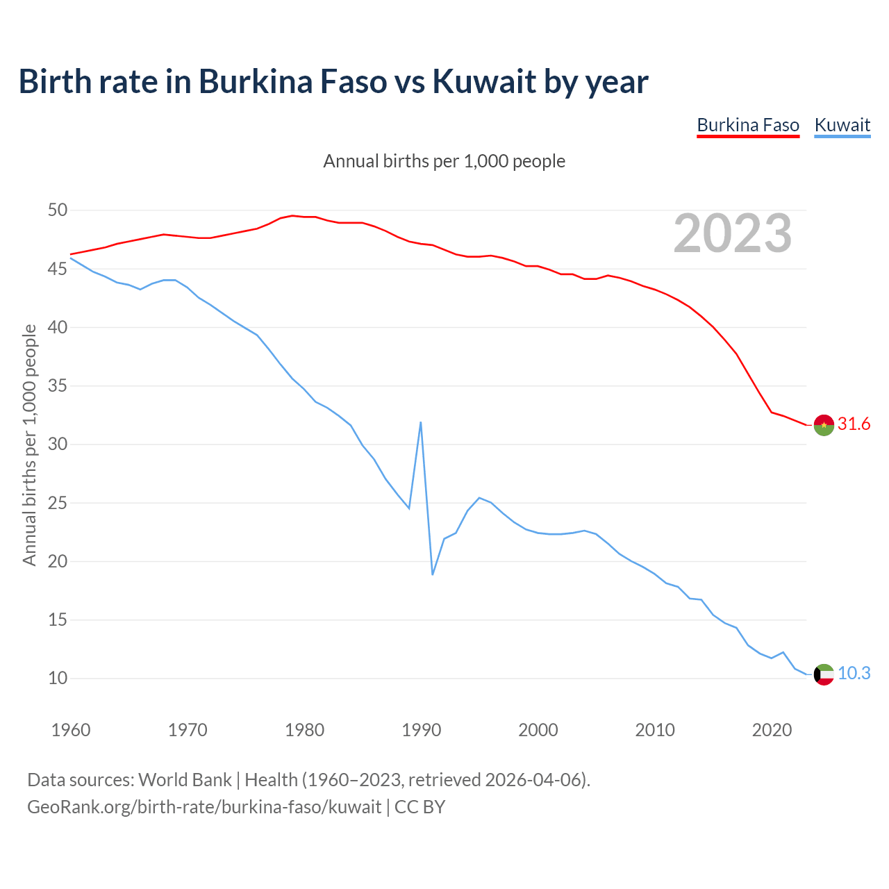 GeoRank.org/birth-rate/burkina-faso/kuwait | CC BY