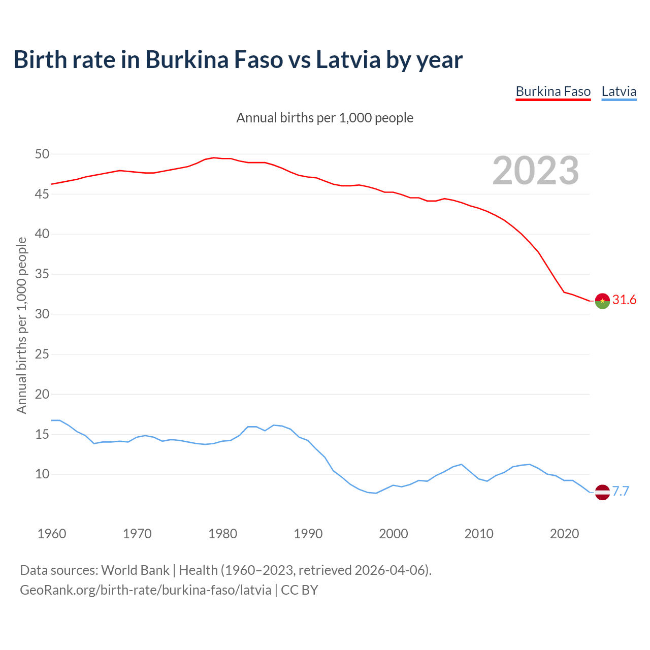 GeoRank.org/birth-rate/burkina-faso/latvia | CC BY