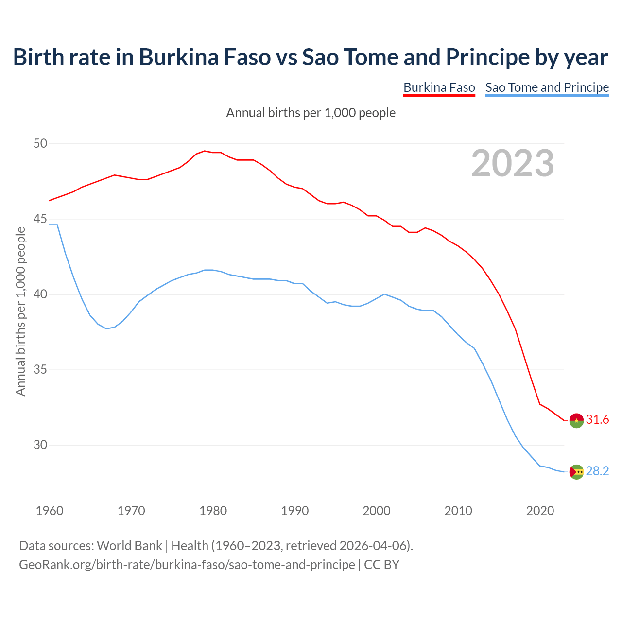GeoRank.org/birth-rate/burkina-faso/sao-tome-and-principe | CC BY
