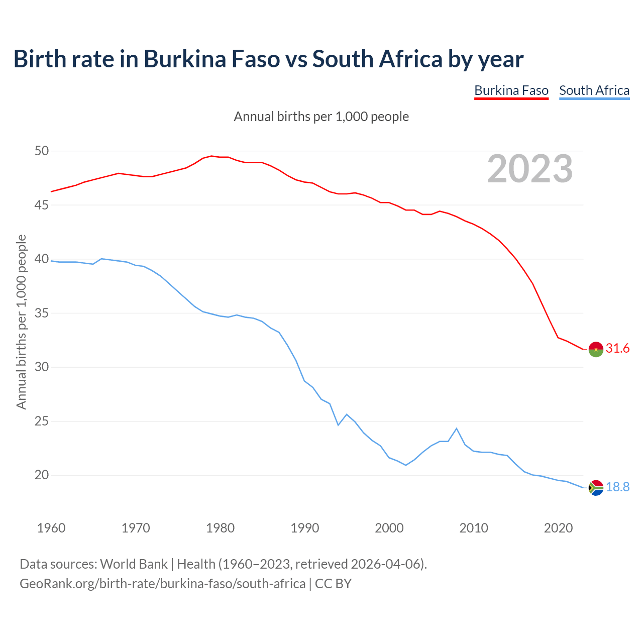 GeoRank.org/birth-rate/burkina-faso/south-africa | CC BY