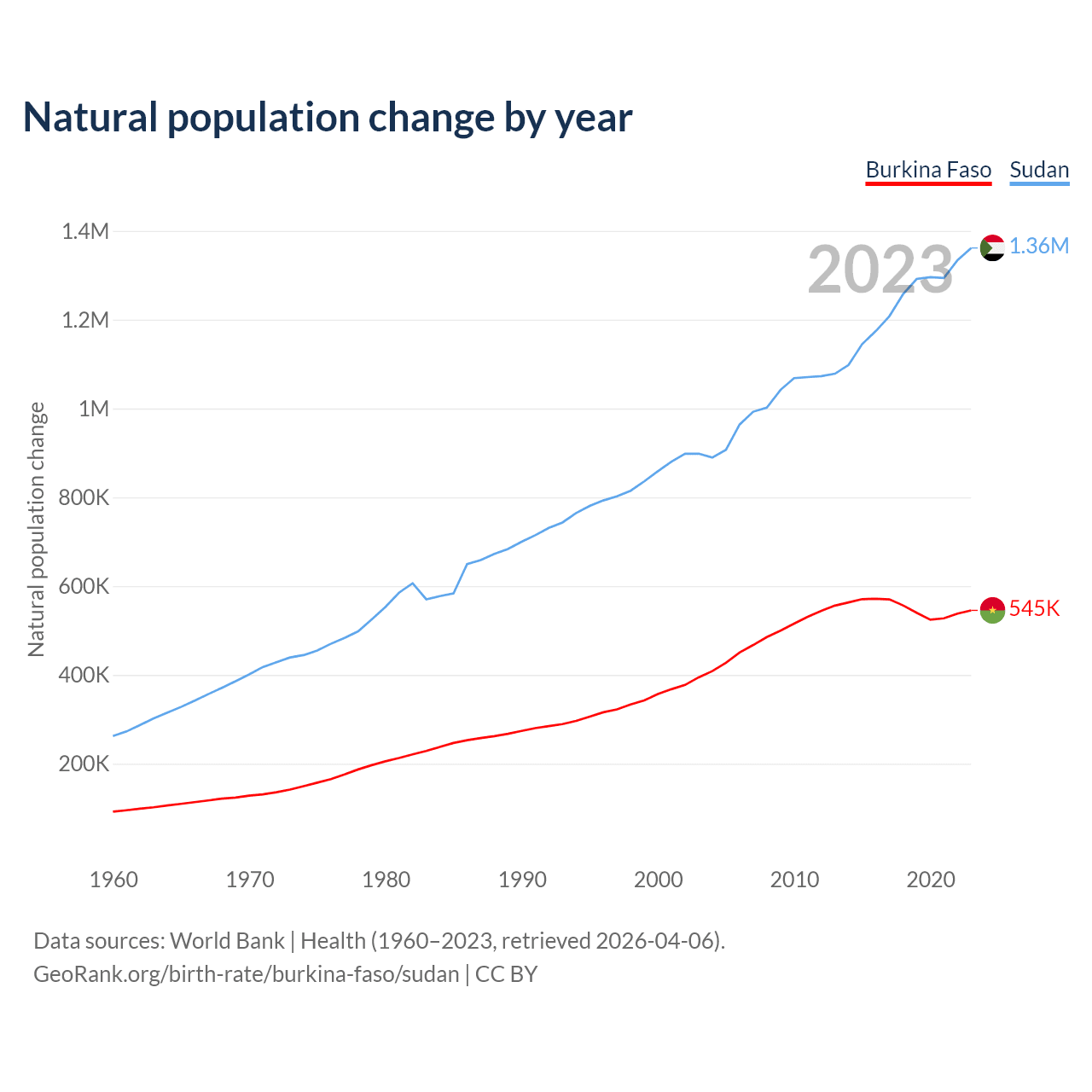 Check Burkina Faso vs Sudan population clock for a dynamic visualization of the changing population.