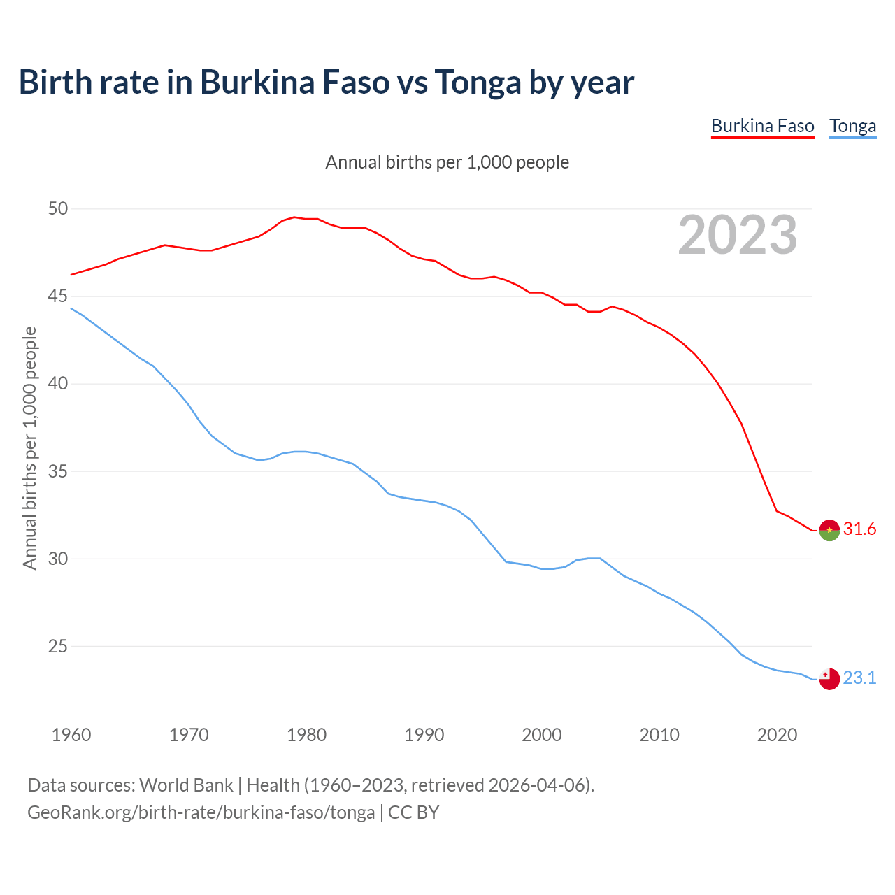 GeoRank.org/birth-rate/burkina-faso/tonga | CC BY