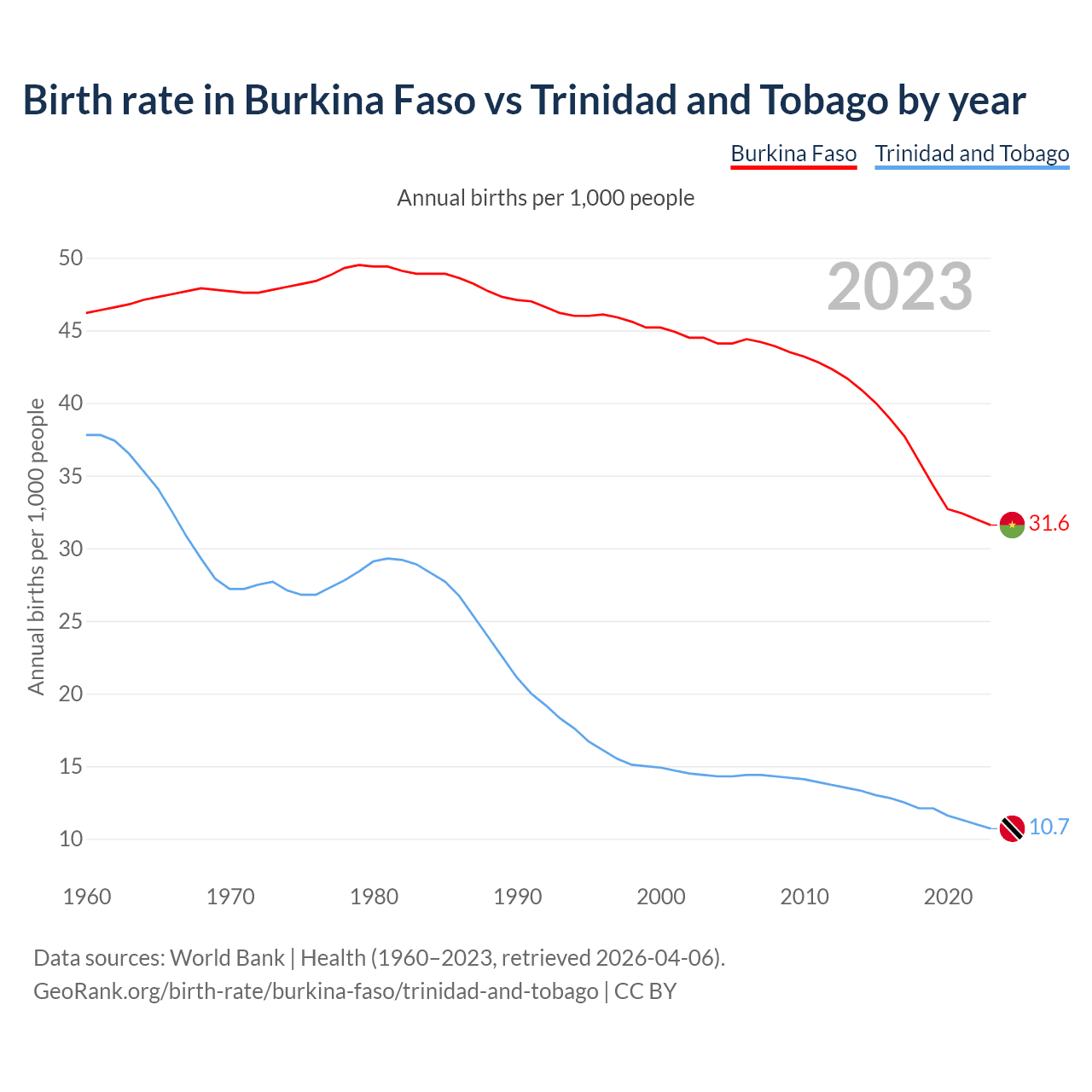 GeoRank.org/birth-rate/burkina-faso/trinidad-and-tobago | CC BY
