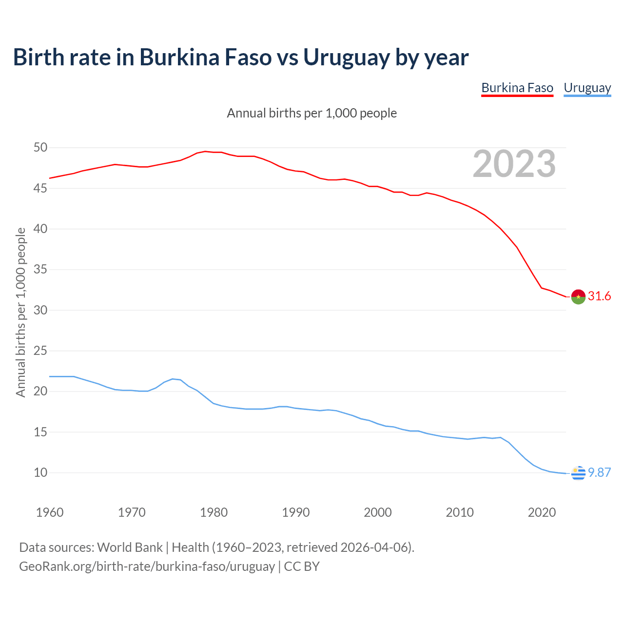 GeoRank.org/birth-rate/burkina-faso/uruguay | CC BY
