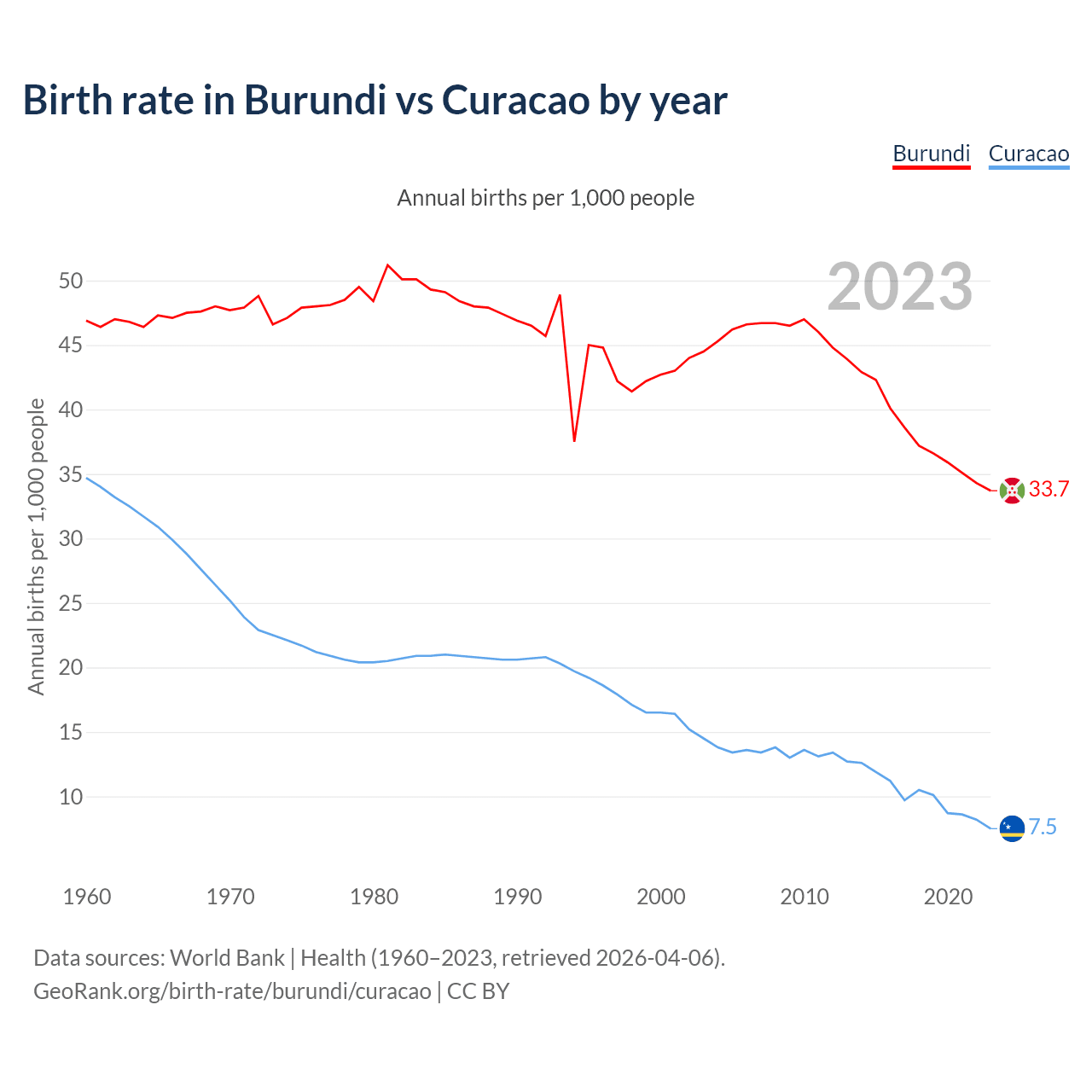 GeoRank.org/birth-rate/burundi/curacao | CC BY
