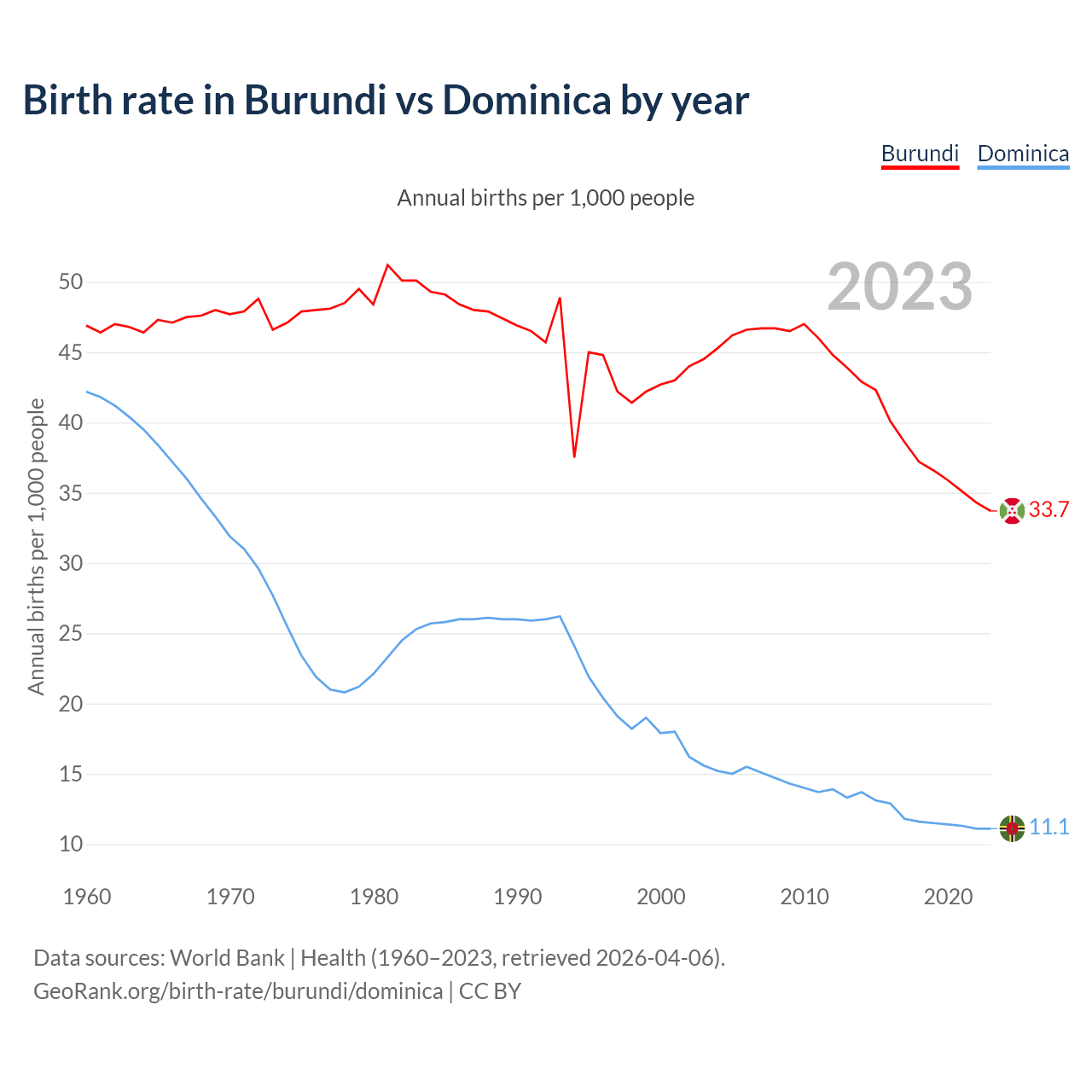 GeoRank.org/birth-rate/burundi/dominica | CC BY
