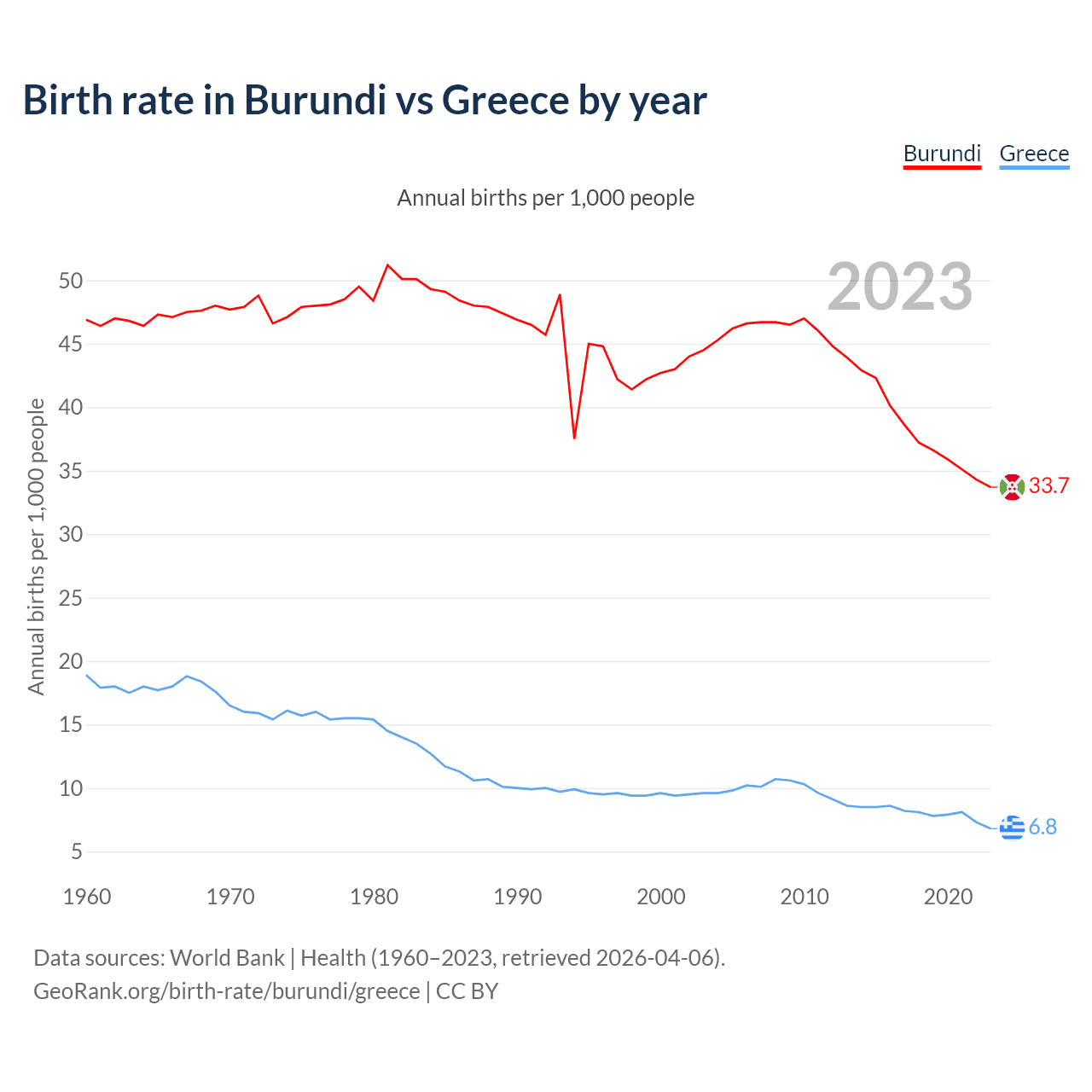 GeoRank.org/birth-rate/burundi/greece | CC BY