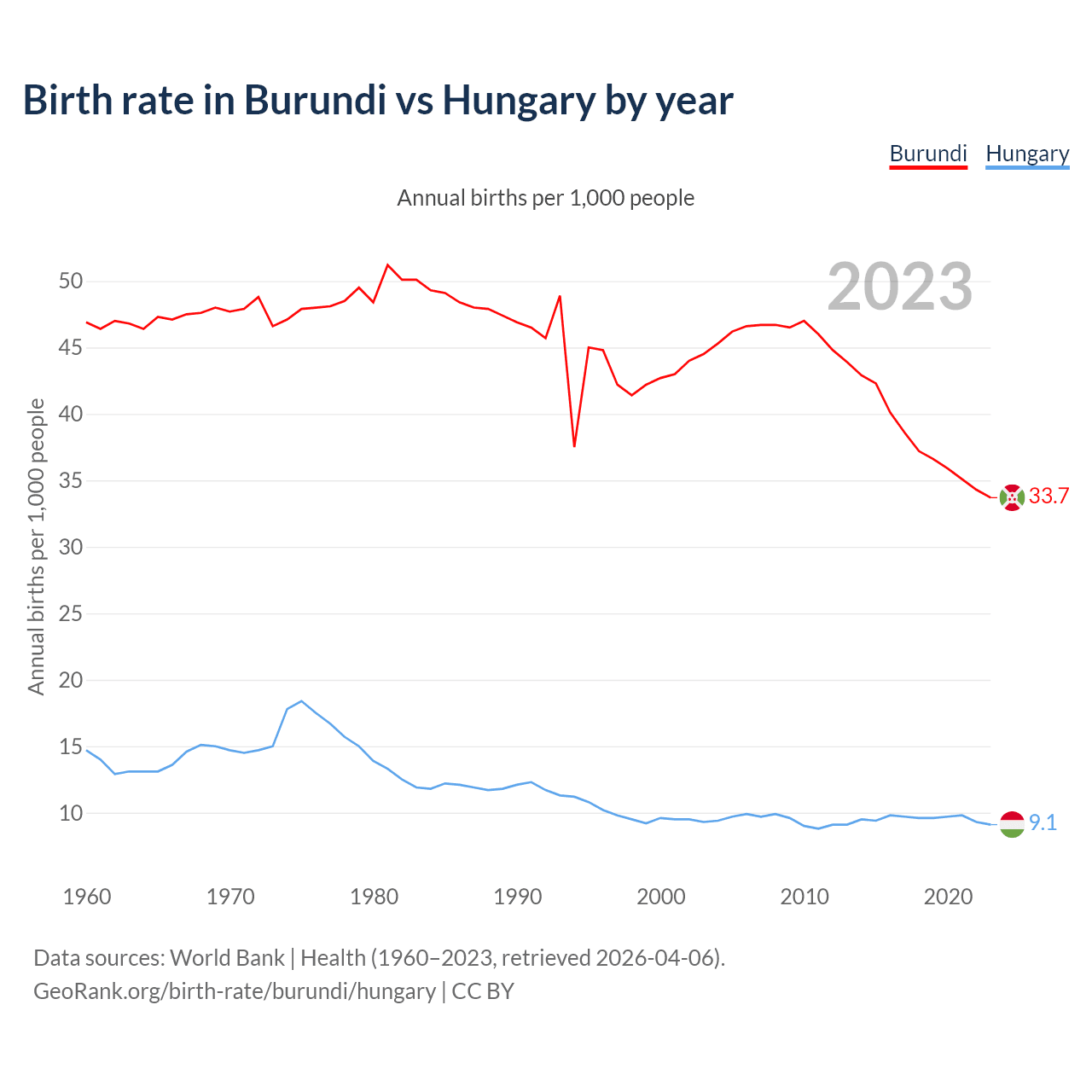 GeoRank.org/birth-rate/burundi/hungary | CC BY