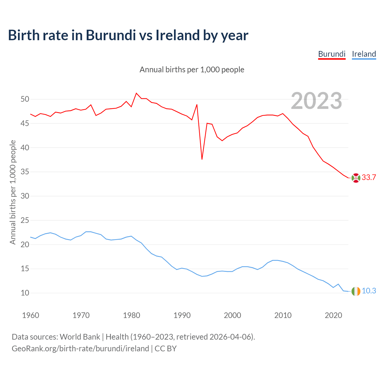 GeoRank.org/birth-rate/burundi/ireland | CC BY