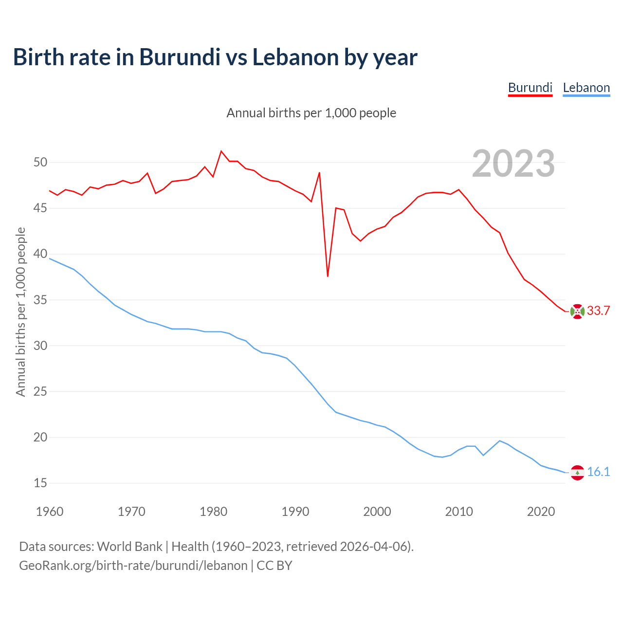 GeoRank.org/birth-rate/burundi/lebanon | CC BY