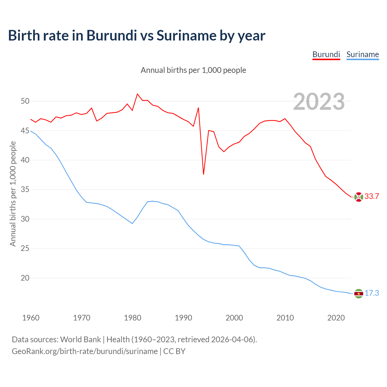 GeoRank.org/birth-rate/burundi/suriname | CC BY
