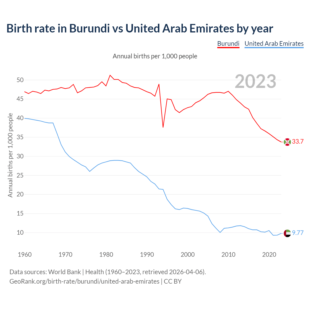 GeoRank.org/birth-rate/burundi/united-arab-emirates | CC BY