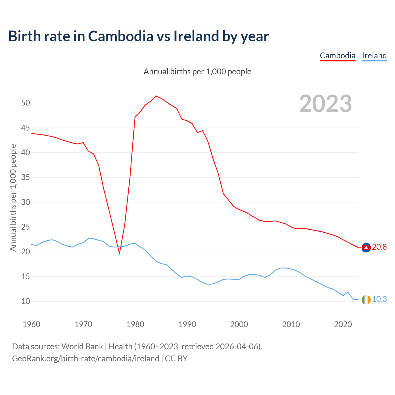 GeoRank.org/birth-rate/cambodia/ireland | CC BY