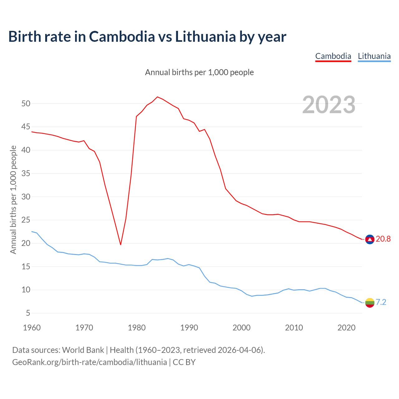 GeoRank.org/birth-rate/cambodia/lithuania | CC BY